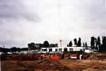 ... Arbeiten für die Balkenrost-Sohlplatte werden ausgeführt.