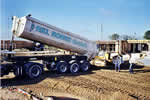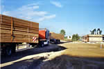 Hier werden die Dachbinder mit einem Autokran entladen.