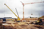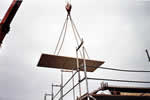 Die erste Platte für die Zwischendecke holt ein Spezialkran ...