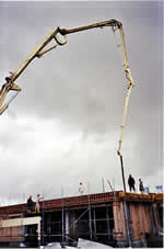 Die Zwischendecke im Bereich der späteren Aufstockung wird betoniert.